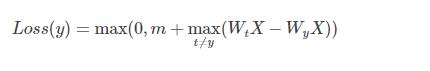 SVM分类器中,常常使用hinge loss函数,用来最大化“分类间隔”。加上正确类别为yy,分类间隔最小为mm,那么
